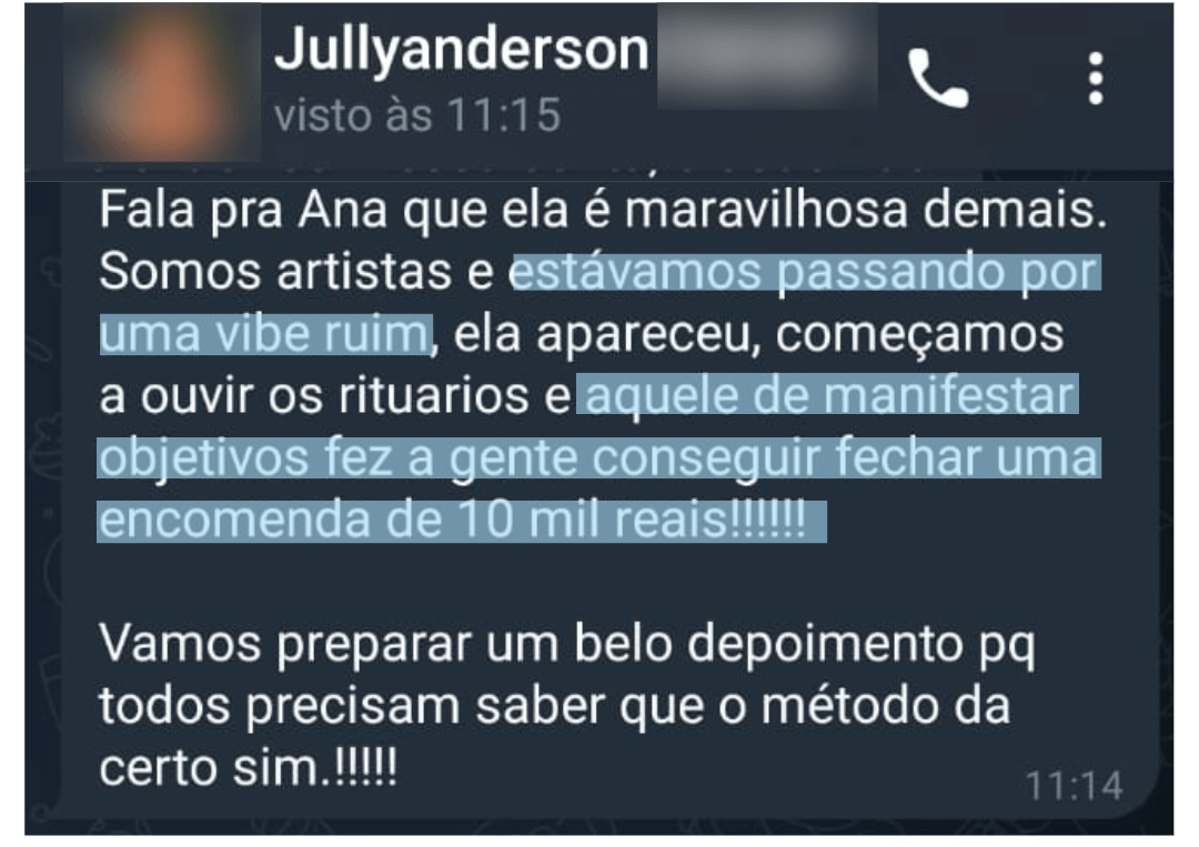 Psicóloga manifestou bem estar e destravou R$ 10mil